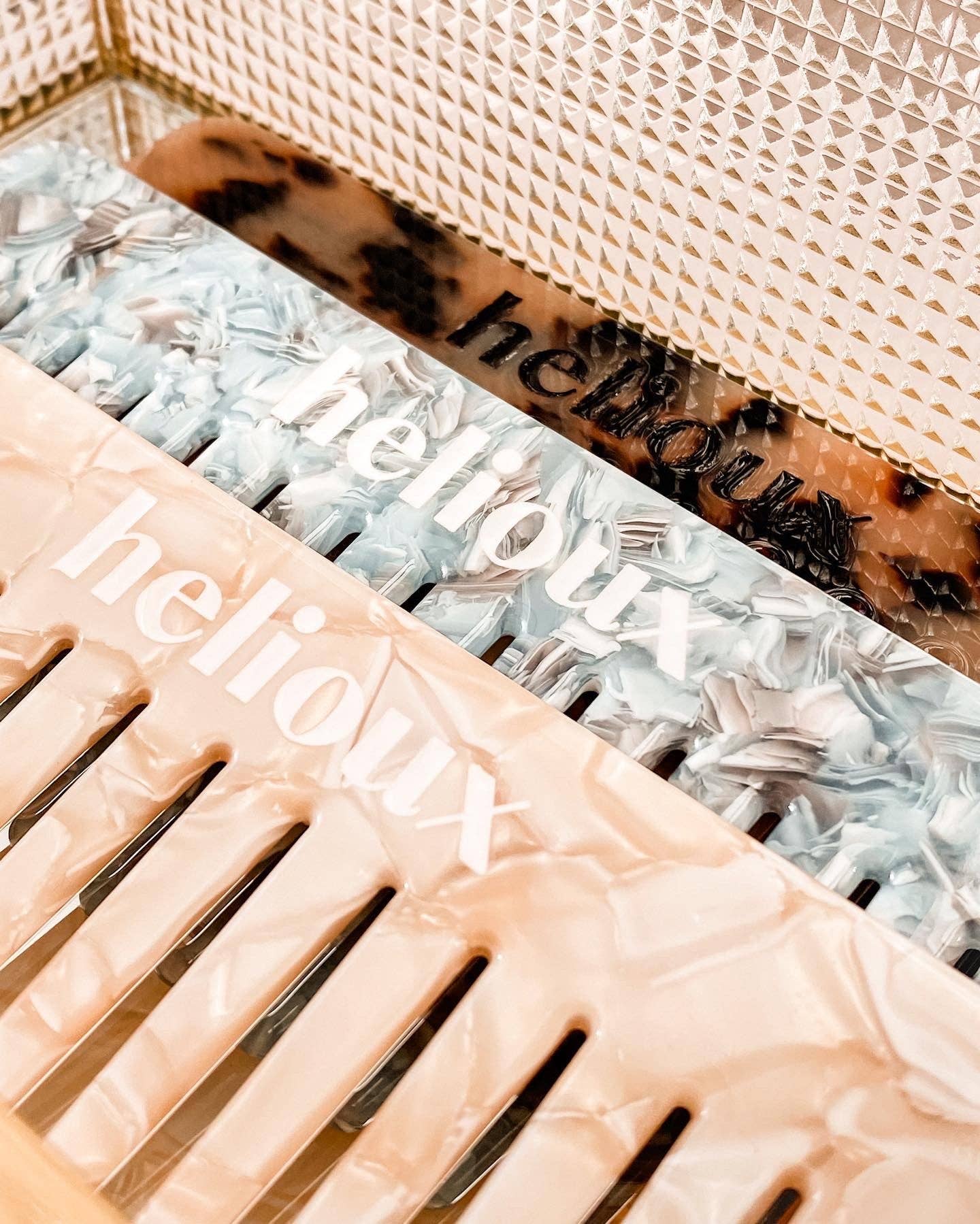 De Liv haarkam van HELIOUX is jouw nieuwe must-have voor moeiteloos ontklitten en het versterken van je haar. Of je nu net uit de douche komt of je lokken droog stylet: deze brede kam glijdt soepel door elk haartype, zonder te trekken of te breken.